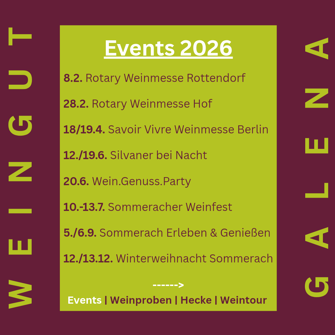Bestellungen per Mail an info@weingut-galena.de oder Telefon (09381-9368) bis Fr, 14.02.2025.